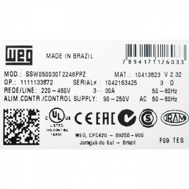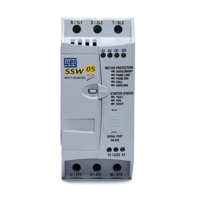 A SSW05 é a mais compacta das chaves de partida estática WEG, com controle de fases do motor, bypass incorporado e todas as proteções para o motor elétrico. Com controle DSP (Digital Signal Processor), a SSW05 é projetada para fornecer ótima performance na partida e parada de motores, com excelente relação custo-benefício. Além disso, são facilmente ajustáveis, simplificando as atividades de start-up e operações do dia a dia. Suas dimensões compactas contribuem para a otimização de espaços em painéis elétricos.